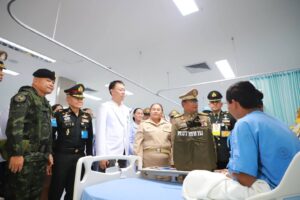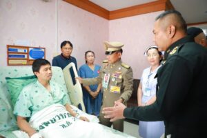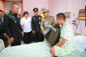 พระบาทสมเด็จพระเจ้าอยู่หัว โปรดเกล้าฯ ให้ พลเอก ไพบูลย์ คุ้มฉายา องคมนตรี เชิญสิ่งของพระราชทานมอบแก่กำลังพลที่ได้รับบาดเจ็บจากสถานการณ์ชายแดนไทย-กัมพูชา ในพื้นที่จังหวัดสุรินทร์